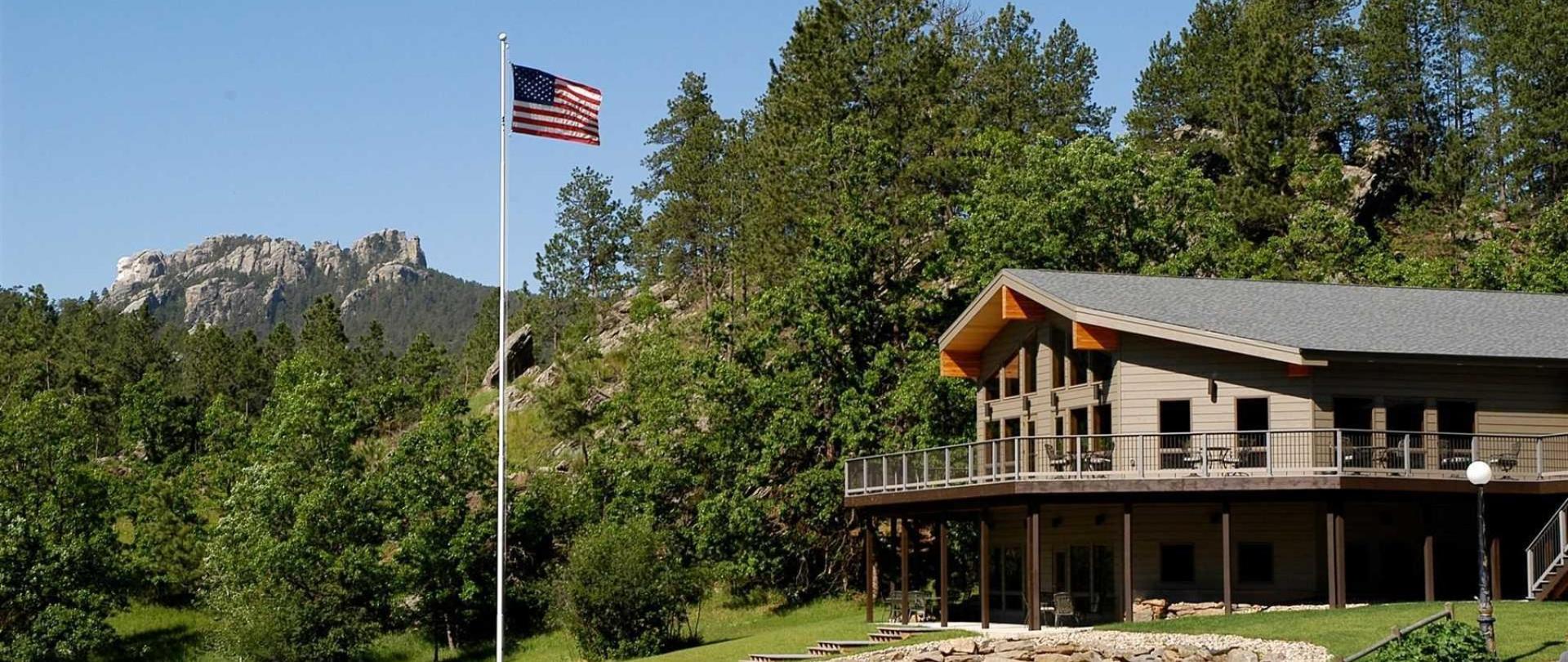 Located on 45 forested acres it not only boasts a profile view of Mt. Rushmore’s George Washington, but is also a upscale lodge, with upgraded amenities, and a spectacular view of the surrounding meadows and hills.