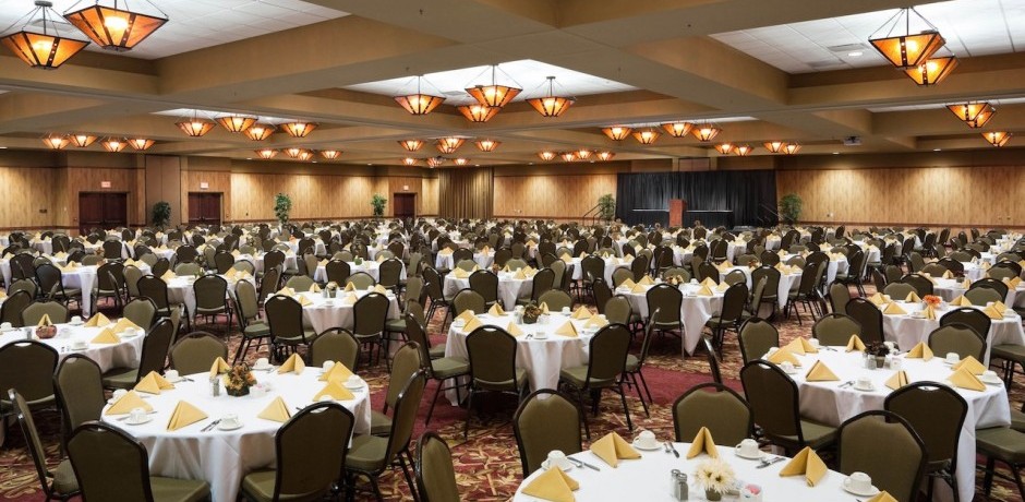 In our 13,000 square-foot main Pine Crest Ballroom, we can accommodate up to 1,000 people depending on the seating style. With four adjoining conference rooms all on one level, and the main ballroom’s flexible, modular format, we have a comfortable, rightsized meeting space for groups as small as 10 people.